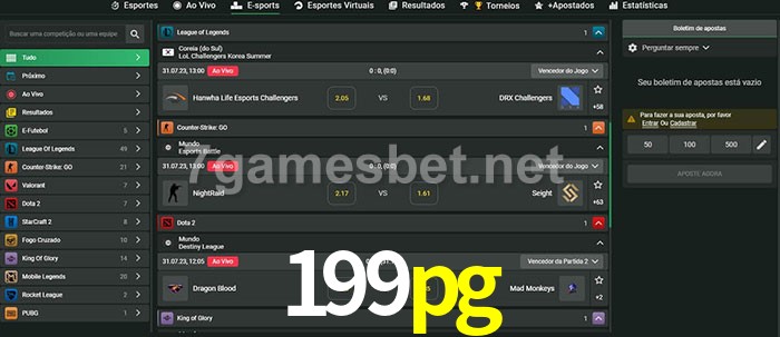 A aposta 199pg oferece aos jogadores a experiência mais conveniente de apostas em eSports!